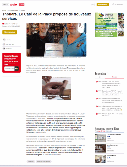 Ouest France parle de notre partenaire : le Café de la Place à Thouars !